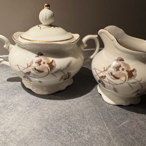 Porsgrunn Porselen fløtemugge og sukkerskål Blomstermotiv