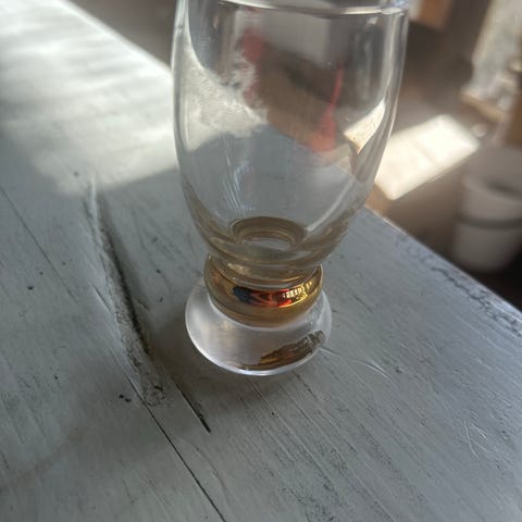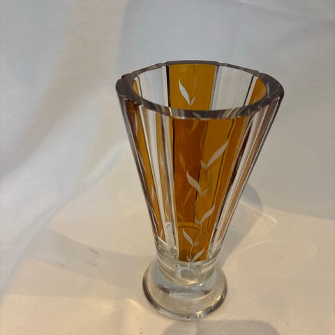 Delvis frostet glass. Høyde 15 cm, bredde 9 cm. Signert og i flott stand.