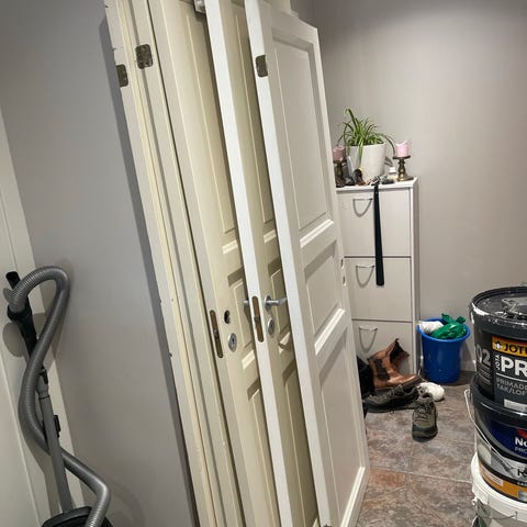 Hvit innerdør i tre med paneldesign