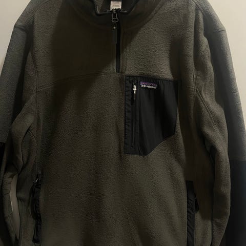 Patagonia herre fleecegenser i størrelse XL, oransje farge og laget av fleece materiale.