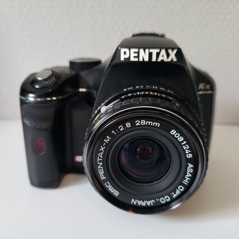 Pent brukt Pentax K-X kamera selges, det bruker 4x AA batteri og medfølger 18-55 linse