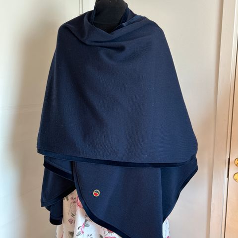 Vintage Mulberry skjerf / sjal / teppe i et nydelig mønster. Målene er ca 150 cm x 120 cm. Det er nesten ikke brukt og har ligget pent lagret. Nydelige blå og gyldne farger. Kan brukes til festdrakt eller som duk også.