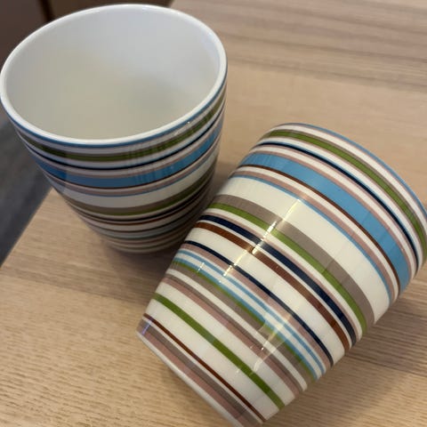 Iittala kaffekopper med skåler i svart og hvitt mønster