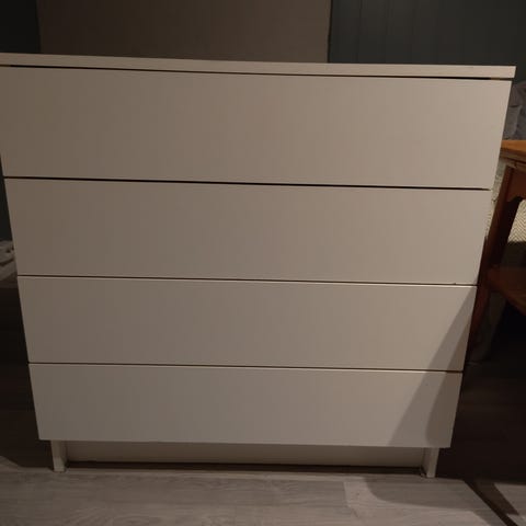 Mørk blå IKEA Nordmela kommode med 4 skuffer selges. Den har en del bruksmerker på toppen.