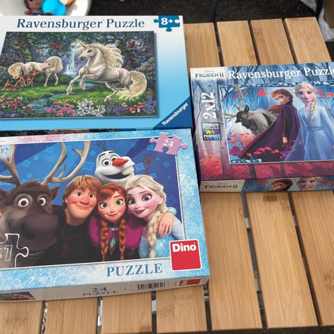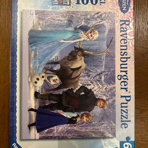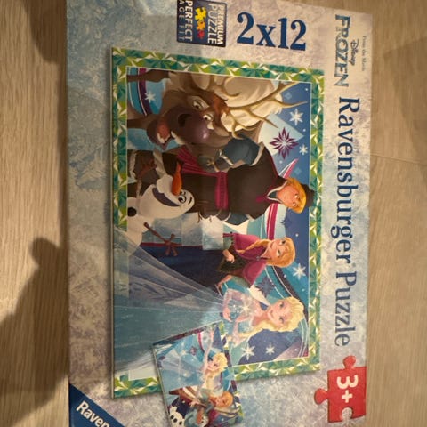 Ravensburger Disney Frozen puslespill med 2 sett på 24 brikker hver. Passer for barn fra 4 år og oppover. Motiver fra filmen Frozen.