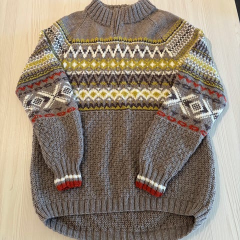 Har flere gensere i andre farger, mønster og str.