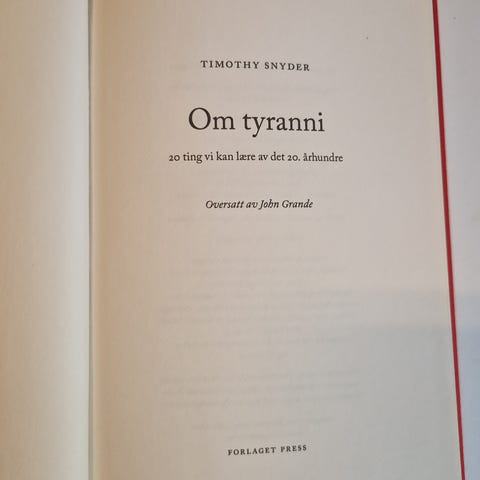 Timothy Snyder: Om Tyranni (innbundet og laminert)