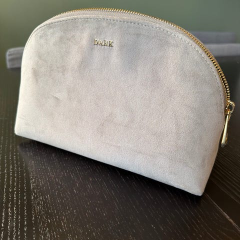 Toalettmappe + sminkepung fra Dark. Brukt en gang. Fremstår derfor som ny. Farge gråbeige. Velour.