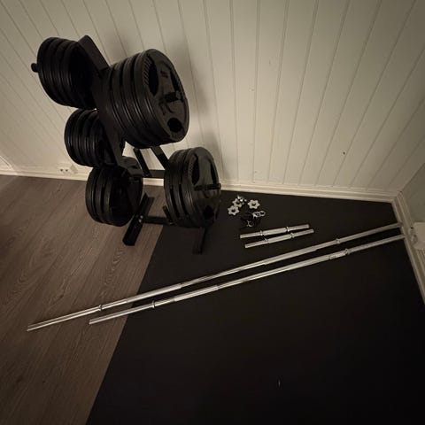 Lat pulldown-stang følger med, men er ikke med på bildene.