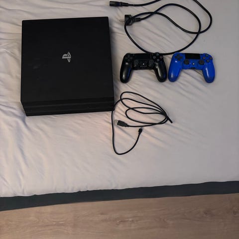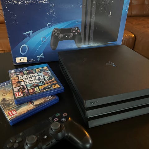 Selger en pent brukt Playstation 4 Pro CUH-7216B med 500 GB SSD (Samsung 870 EVO kjøpt 2025).