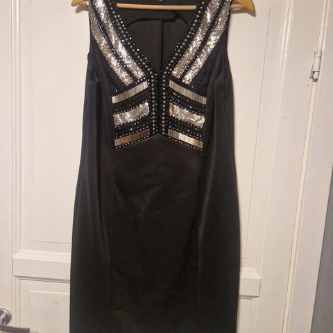 Blå festkjole i størrelse XL for dame. Kjolen har 3/4 lange ermer og er laget i et blondermateriale. Passer til formelle anledninger og festbruk.