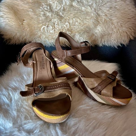 Sergio Todzi sandaler i størrelse 36. Sandalene har åpen tå og åpen hæl med stropp rundt ankelen. Sålen er tykk med flettet design, og overdelen har et mønstret snitt som gir ventilasjon. Kan sendes med Postnord men kjøper betaler frakt (Porto + 100).