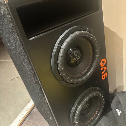 GAS MAX B1-18 - basskasse (8" tommer, 500W RMS, 2x2 Ohm) og en GAS MAD A2-600.1DFL ( 600w rms 1ohm) forsterker selges samlet