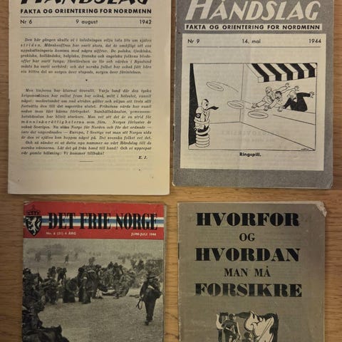 15 originale norske avisutklipp/kunngjøringer fra okkupasjonstiden, tydelig knyttet til Nasjonal Samling (NS) og NS-regimet.