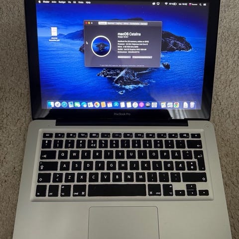 Apple MacBook Pro 13" Mid 2010 laptop med macOS High Sierra. Utstyrt med 2,4 GHz Intel Core 2 Duo-prosessor, 4 GB 1067 MHz DDR3 RAM, og NVIDIA GeForce 320M grafikk med 256 MB minne. Harddisk på 250gb og en ssd på 1tb. Batteritilstand vurdert som normal. Cdrom er fjernet til fordel for extra lagring. SSD'n ligger i egnet ramme. Batteri ble kjøpt nytt og byttet for 3-4 år siden, minimalt brukt de siste årene.