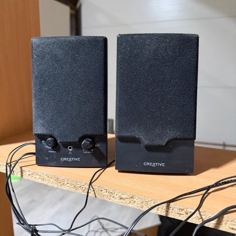 Logitech høyttalersett bestående av to satellitthøyttalere og en subwoofer. Høyttalerne har en svart finish og er egnet for bruk med datamaskiner eller andre lydkilder.