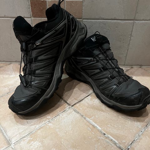 Salomon Fottur sko i størrelse 40. Skoene er designet for fottur og tilbyr funksjonalitet tilpasset denne aktiviteten.