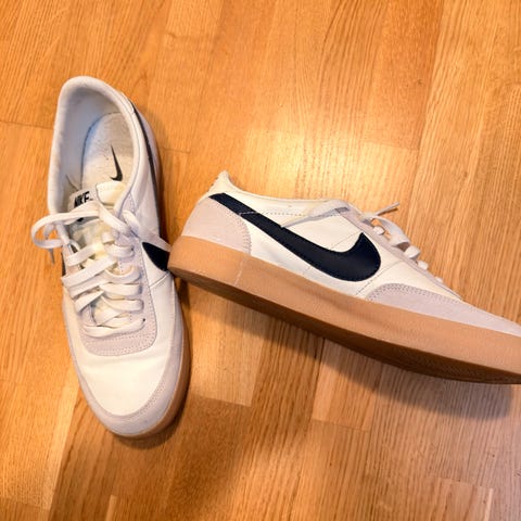 New Balance sneakers joggesko i størrelse 42. Skoene har en nøytral farge og er laget av materialer som kombinerer tekstil og semsket skinn. Egnet for både hverdag og trening.