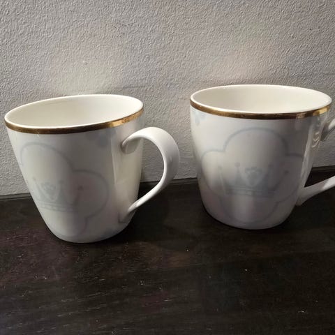 Selger 8 dype frokostboller, suppeboller, fine i glassure 400, Har også 6 kopper dette Ofisielle Brøllupsservice for kronprinsesse Victoria i Sverige, Rørstrand porselen, laget som jubileumsservice til bryllupet deres, av Iittala. 1200 for alt. Merk: den lille bollen på bildene er solgt.