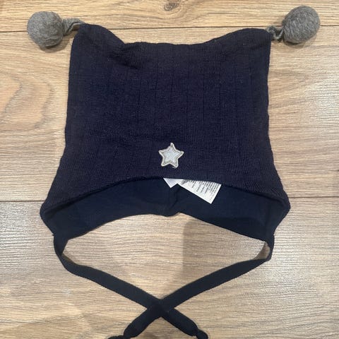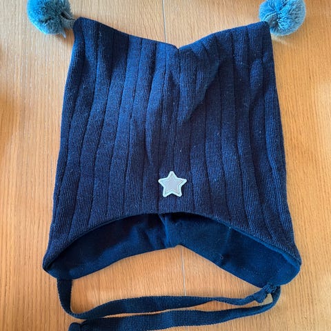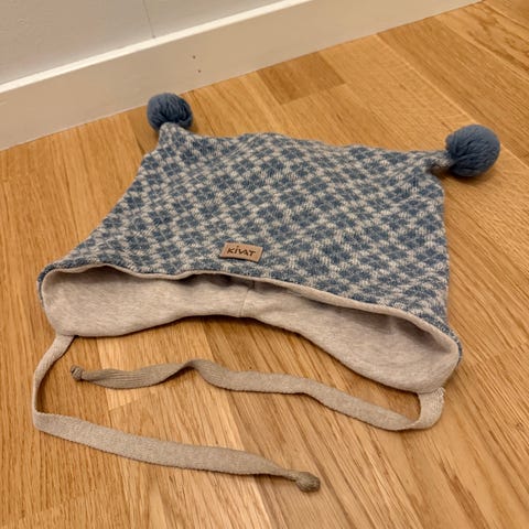 Pent og lite brukt Kivat-lue, str. 2 år. God og varm, brunmelert, knytelue med dusker og logo. Supergod passform og vindstopper på ørene, med 100% ull på utsiden og bomull på innsiden. Ingen slitasje. Nypris 689kr, selges for 380kr + porto.