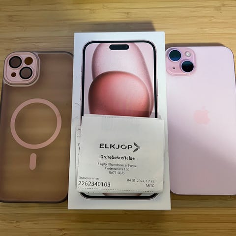 Selger min iphone 15 plus 256gb rosa ferge.
