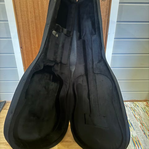 Norsk Musikk gitarutstyr i svart farge. Produktet er designet for oppbevaring og transport av gitarer, med flere lommer og bærestropper for praktisk bruk.