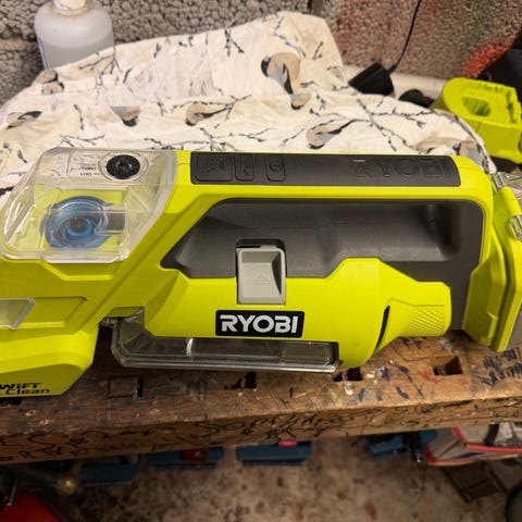 Ryobi rensemaksib med kompakt design og håndtak for enkel bruk. En fin rensemaskin som er lett å ta frem. Batteri følger ikke med. Selges da jeg fikk en annen i gave med damp. Kun brukt et par min en gang. God som ny