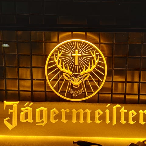 Tøft LED "neonaktig" lys skilt med inngravert motiv. Motivet har 3D effekt, da den er inngravert med 3D teknologi. Dette gjør også at motivet blir tydelig fra flere vinkler. Metallkjede for opphenging følger med til alle skilt.