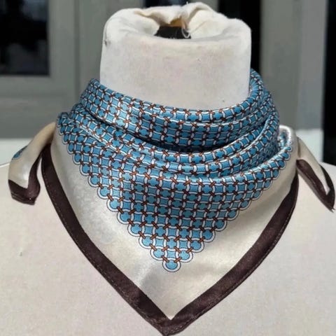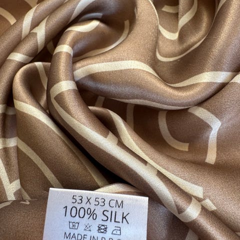 100% silke. Veldig myk og fin silke. Silken er av beste kvalitet. Helt som nytt. Størrelse 53 x 53 cm. Kan gjerne sende med posten til 31.-