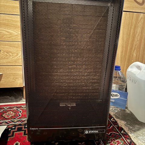 Qlima gassovn med kontrollpanel. Enheten har en svart og grå farge, og inkluderer en kontrollknapp og indikatorlampe. Passer til bruk i ulike varmeapplikasjoner.
