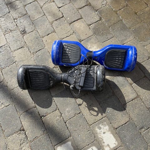 Classicman Standard hoverboard i hvit farge. En selvbalanserende elektrisk scooter med to hjul og fotplater med sklisikre overflater. Utstyrt med ladeport og strømbryter. Egnet for personlig transport på jevne underlag.