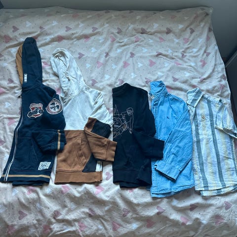 Selger en fin klespakke til gutt i størrelse 122–128. Klærne er pent brukt og i god stand, uten hull eller flekker.