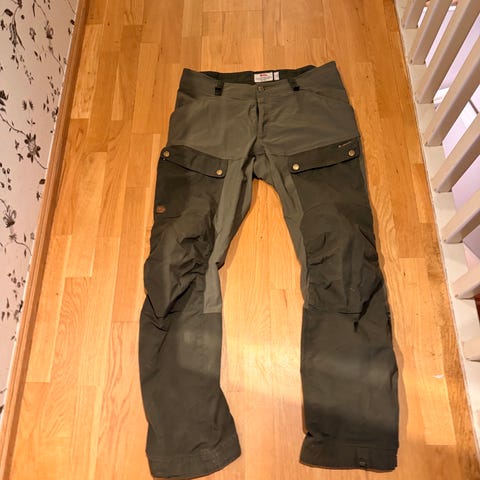 Fjällräven bukse for dame i størrelse 40. Buksa er rød med svarte detaljer og laget i slitesterkt materiale.
