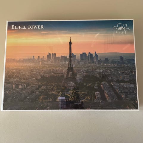 Eiffel Tower puslespill med 1000 biter. Puslespillet viser et bilde av Eiffeltårnet i Paris med bylandskap i bakgrunnen. Passer for voksne og eldre barn.