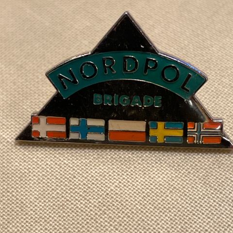 Ukjent merke pin i sølvfarget materiale. Pinen leveres i en liten svart eske med gjennomsiktig lokk. Produktet har et dekorativt mønster og er egnet som tilbehør. Fra Svalbard år 2001.