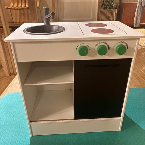 Pent brukt lekekjøkken som har gitt mange timer med lek.