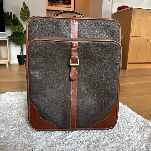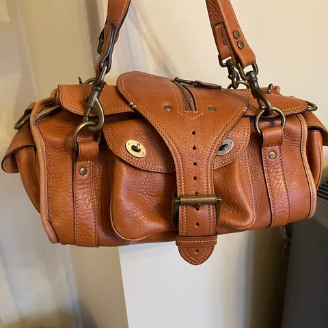 Mulberry skinnveske i lær for unisex bruk. Vesken har en brun farge og er laget av lærmateriale. Designet inkluderer spenner og flere lommer for oppbevaring.