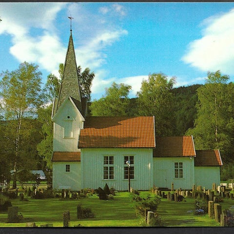 Postkort med motiv av Nissedal kirke, en korskirke bygget i 1764. Tilhører Agder og Telemark bispedømme. Pent, ubrukt storformat, se bilder