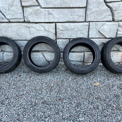 Selger 4 stk dekk med felger. Alle felgene er litt kantskjørte og 2 av dekka er slitne. Er åpen for å diskutere pris