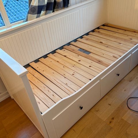 Sengen må hentes, jeg har dessverre ikke mulighet til å levere. Henting skjer fra hus.