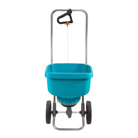 Garden gjødselspreder kan brukes til å spre gjødsel, frø eller veisalt på fortauet om vinteren