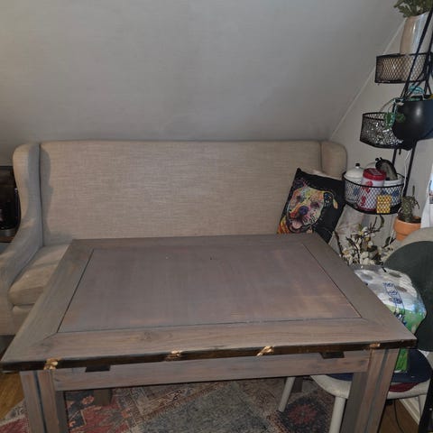 Tv benk gis bort ( det er sånn si helt nytt, men skrudd sammen feil. Så ble noen skader på det, men eneste som vises er det som er på bilde.