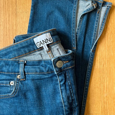 Ganni Denim bukse i blå farge, størrelse S med midjevidde W26. Laget av denim materiale, beregnet for kvinner.