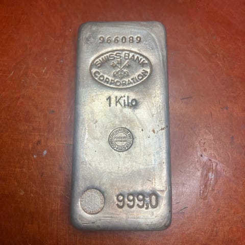 Sølvbarre. 1 Kilo SUISSE