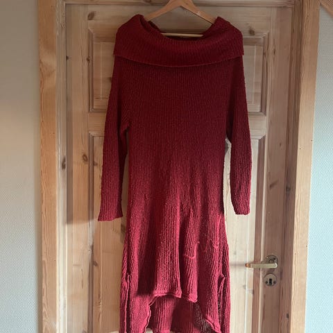 Fin rød kjole fra Nelly. Jeg tror den opprinnelig var L men har måttet bytte glidlås (obs, glidlåsen er litt hard), så jeg vil si den heller er str M.
