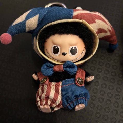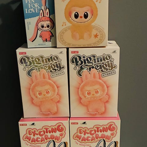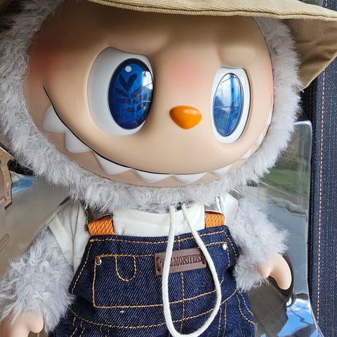 Labubu vinylfigur selges. Figuren har en myk og søt kaninlignende design, laget av vinylmateriale. Passer for samlere og som dekorasjon.