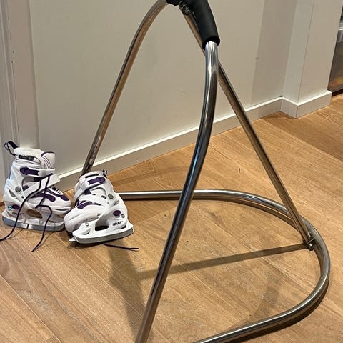 Vurderer å selge skøytestøtte etter min datter. Den må hentes og prisen er satt.