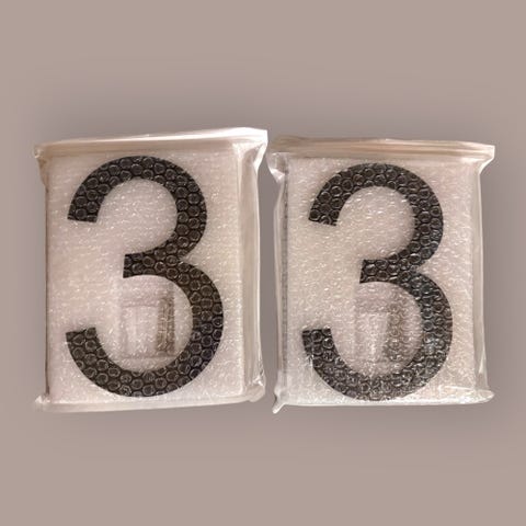 Helt nytt husnummer/tall selges. Jeg kjøpte tallet men fikk helt likt i julegave. Høyde 40 cm. Festene bak tillater at en kan legge ledstripe/lys bak tallet.