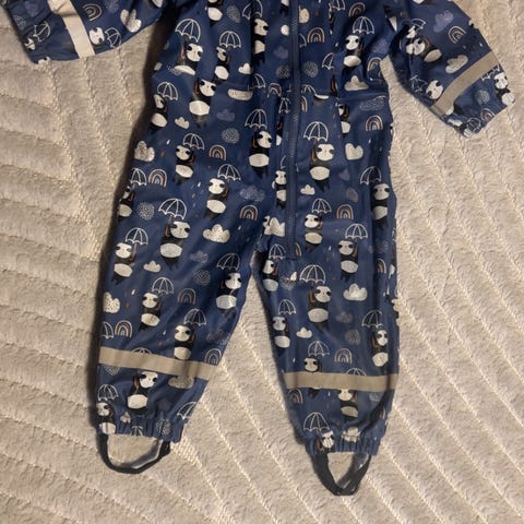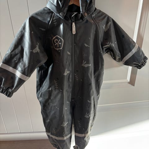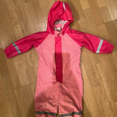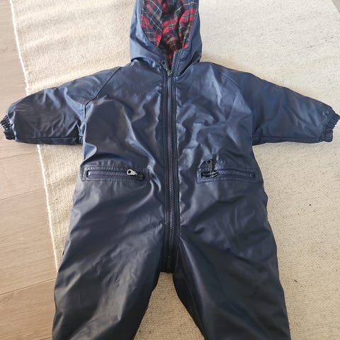 Pent brukt. Står størrelse 70, men er nok heller rundt 80-90 da buksene kan justeres. Fargen ser gul ut på bildene. Er mer oransje.