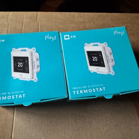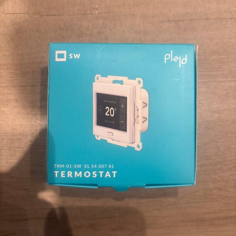 Selger uåpnet Plejd termostat. Et par skrammer på esken men ingenting av betydning.